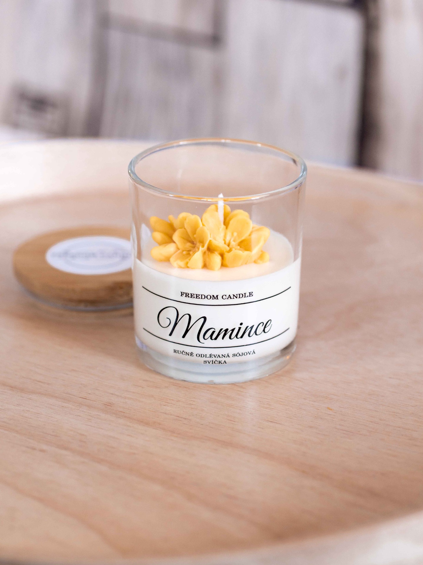 Svíčka odlévaná z přírodních vosků v čirém skle, zdobená odlévanými květy. Svíčka má příjemnou vůni levandule, která neobtěžuje a jen kolem vás jemně plyne. Pro uchováni vůně a čistoty vaší svíčky, je doplněna o bambusové víčko. Uzavíráním zamezíte usazování prachu na vosku a až vám svíčka vyhoří můžete sklenici využít dál. Při správné péči vydrží hořet až 30 hodin.