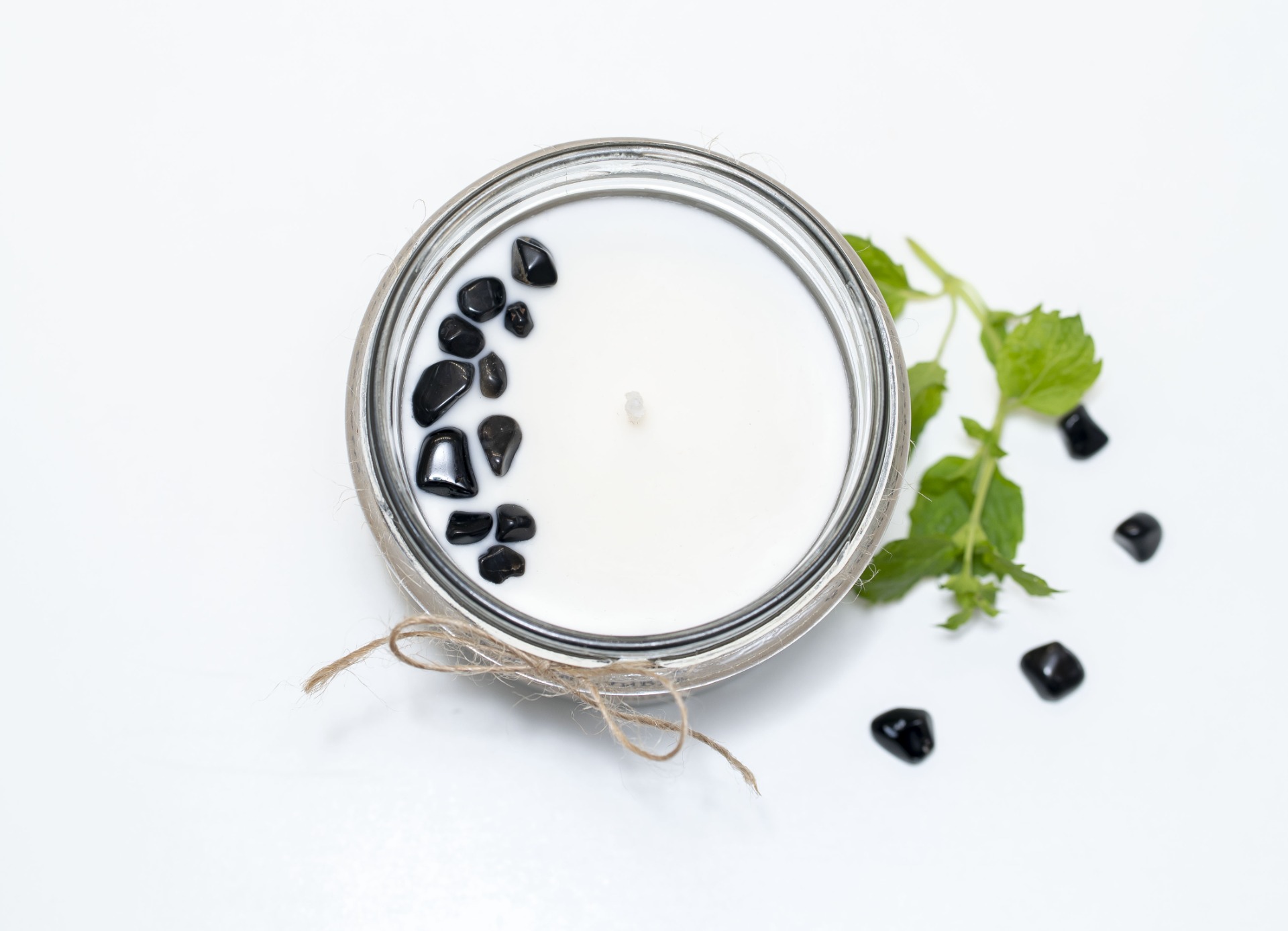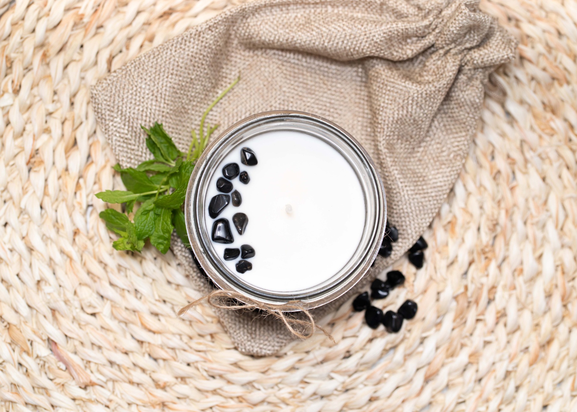 Sójová svíčka ve skle s minerálními kameny. Osvěžující vůně máty, která neobtěžuje a jen kolem vás jemně plyne doplněná o minerální kameny zlatého obsidiánu. Obsidián vznikl rychlým ochlazením lávy ve vodě. Je to vysoce ochranný kámen, odhání negativitu
